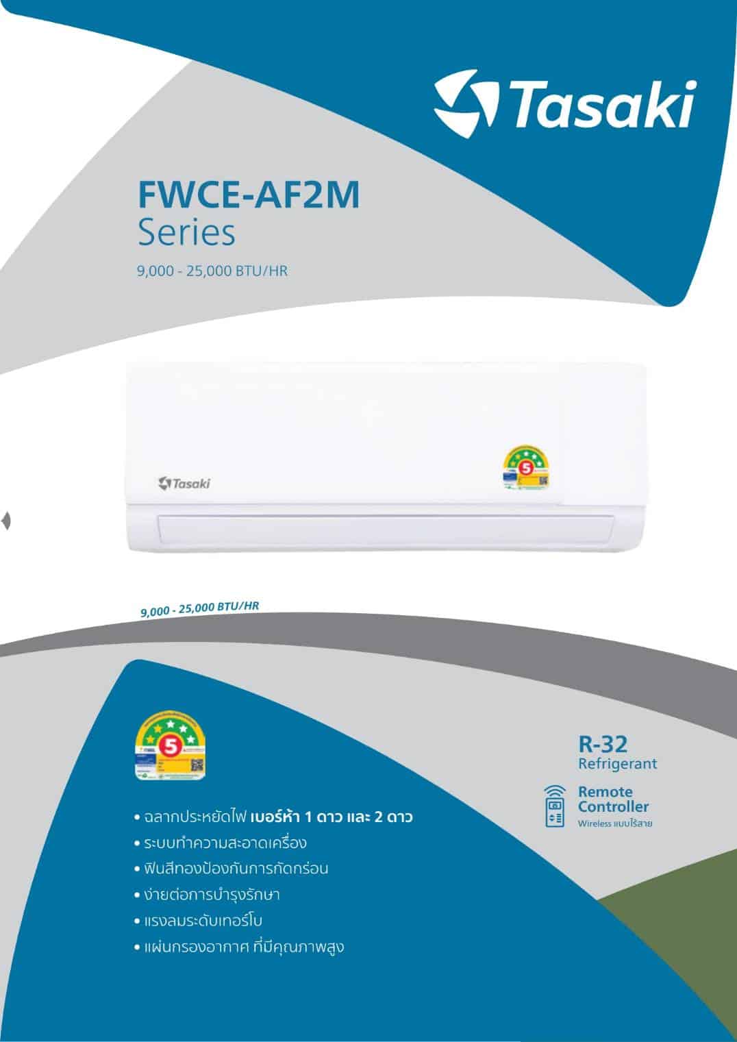 เครื่องปรับอากาศ ยี่ห้อ TASAKI FWDE-I-AF1M ระบบ INVERTER เครื่องปรับอากาศชนิดติดผนังรุ่นใหม่ 2022 มาพร้อมน้ำยา R-32 ติดตั้ง ดูแลรักษาง่าย ด้วยดีไซน์ทันสมัย เสียงเงียบเหมาะสำหรับใช้ใน ห้องนอนเป็นที่สุด